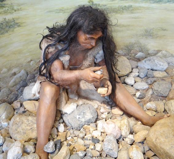 Reconstruction of Tautavel's man carving tools. Room dedicated to the first inhabitants of Roussillon in the Museum of prehistory of Tautavel