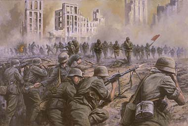 Here below, a sketch that portrays a human wave frontal assault featuring the Germans against the Russians during World War Two.