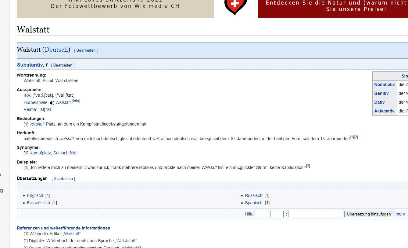 Bild: Erklärung von „Wal“ oder „Walstatt“, aus Wiktionary, public domain